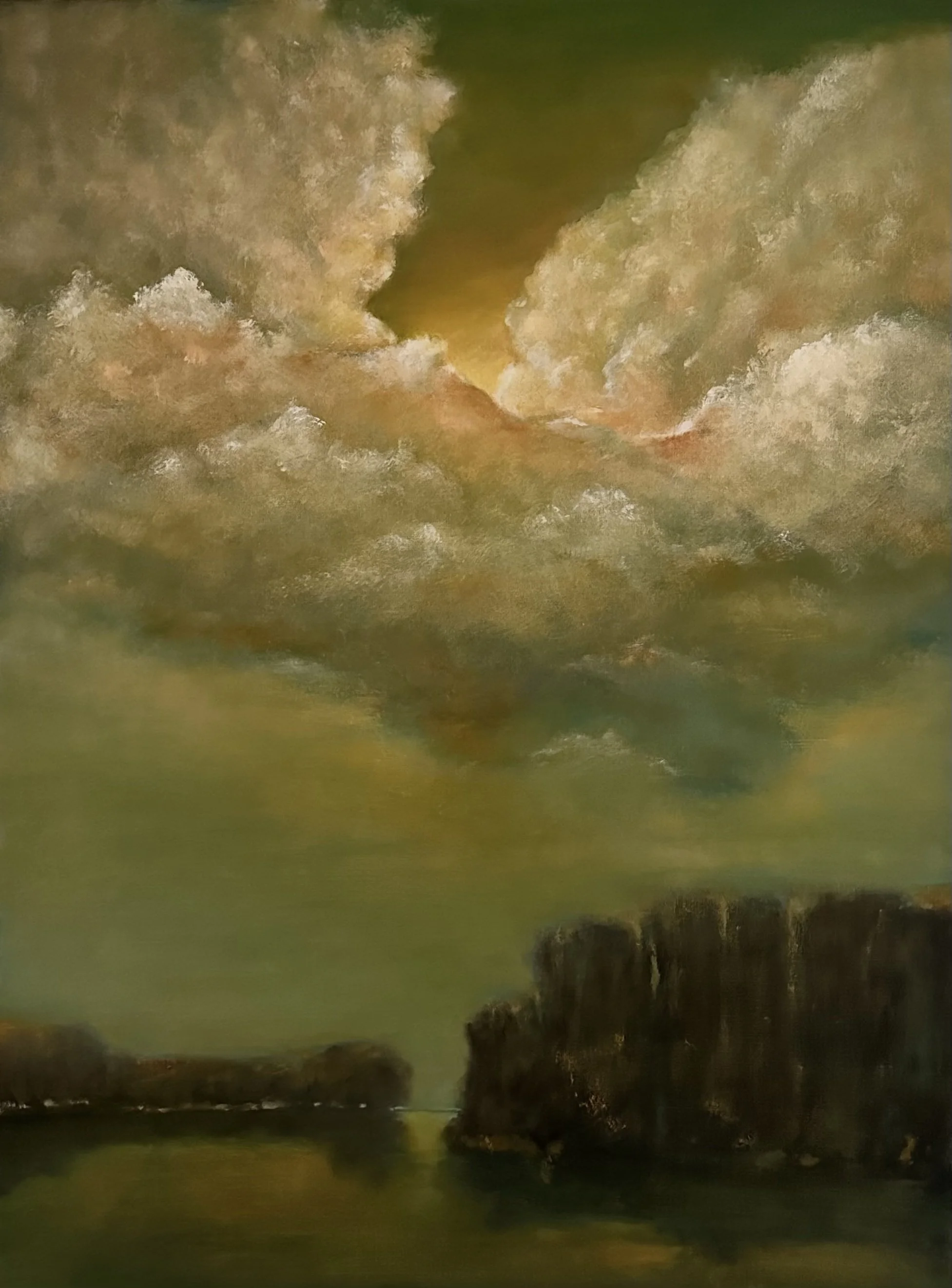 Late afternoons in south Louisiana feature stunning clouds and vibrant sunset hues. While analyzing the vivid colors and drifting clouds, I observed interesting light and shadow patterns on the earth. It is the effect of this elusive light that captured my curiosity and stimulated my imagination. Following the development of a concept, I began creating a series of paintings to illustrate this intriguing phenomenon of Nature.