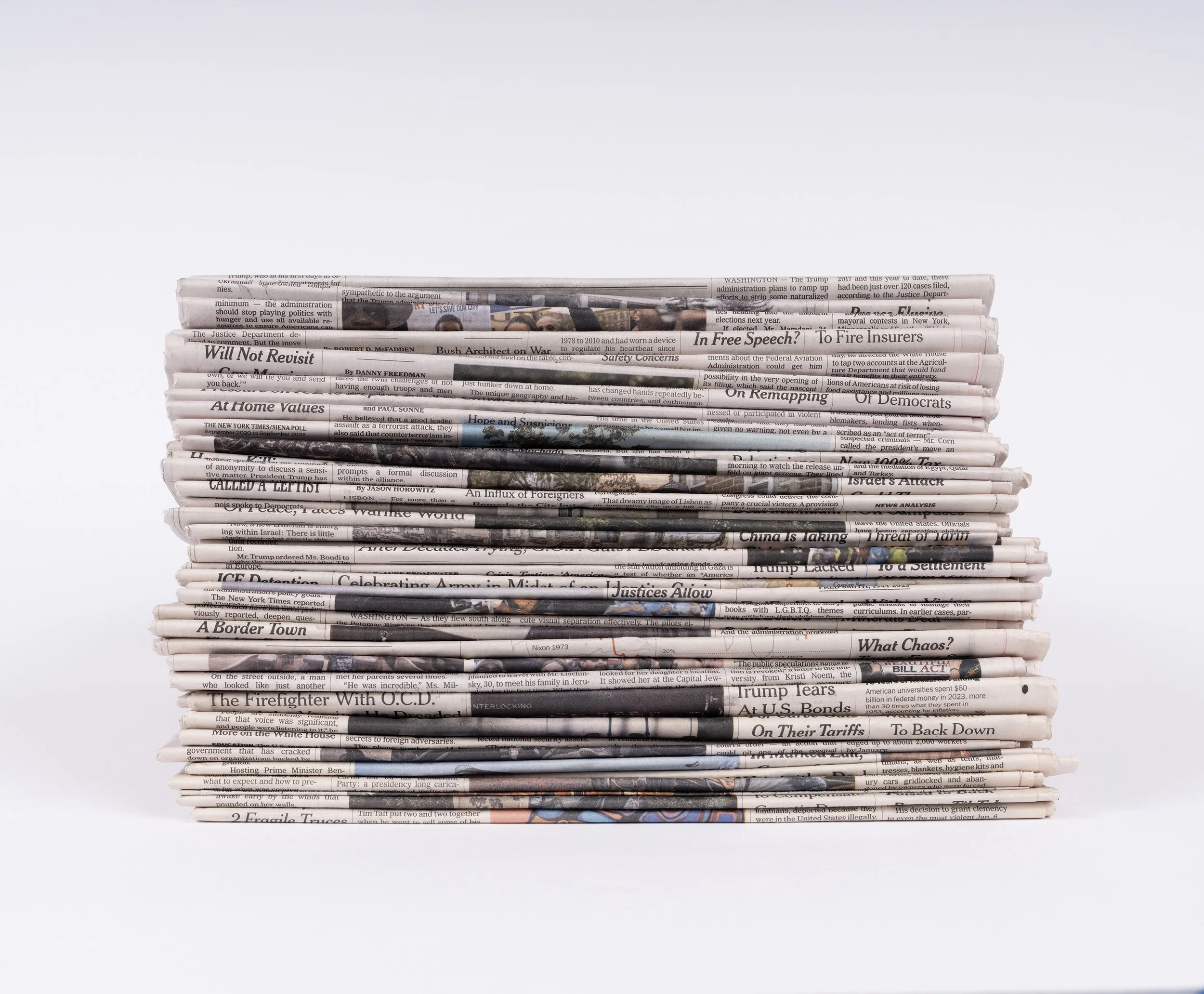 This exhibition includes photographs made in response to contemporary political and social concerns. I utilize elements from daily newspapers and treat the paper and its contents as objects to alter and recontextualize. Via gestures of removal, collage, and restaging, I reflect upon wars, court decisions, political power, displacement, loss, and resistance. The resulting works allow me to linger with particular texts, images, and events, and to respond to them in a tactile manner.
